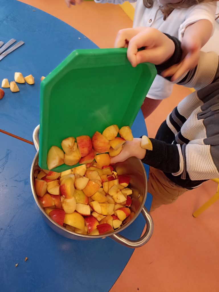 Jeudi 12, préparation de la compote de pommes.